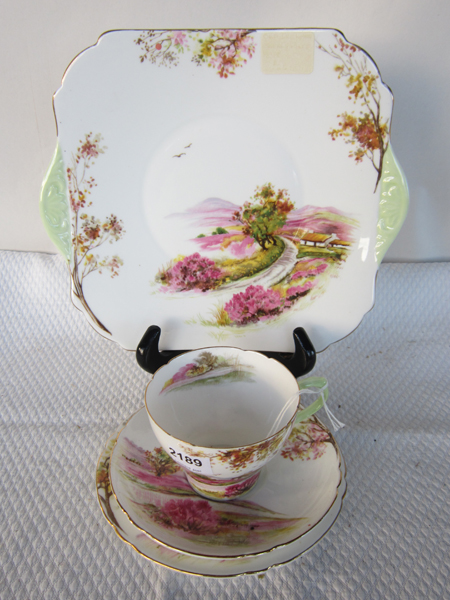 TEN PIECES OF SHELLEY TEA WARE THREE TRIOS AND BREAD PLATE, OLD IRELAND PATTERN