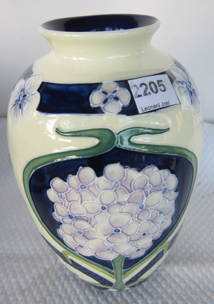 AN ENGLISH CERAMIC VASE, STYLE OF MOORCROOFT, MAKER OLD TUPTONWARE, 21CM HIGH