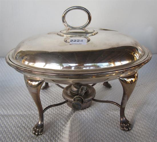 AN EARLY 20TH CENTURY EPNS WALKER AND HALL FOOD WARMER, WITH BURNER
