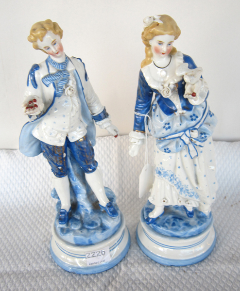 A PAIR OF 19TH CENTURY CONTINENTAL PORCELAIN HARD PASTE, FIGURINES, 34 CM HIGH, SOME MINOR PAINT LOSS