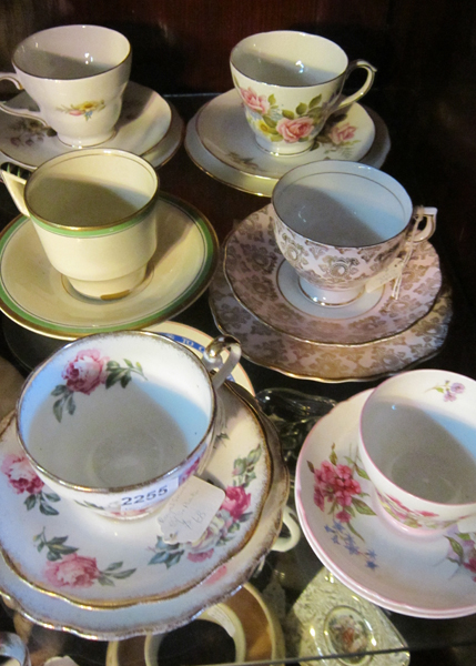 SEVENTEEN PIECES OF TEA WARE FOUR TRIOS, DUO AND A CUP WITH TWO SAUCERS