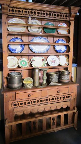A 19TH CENTURY FRENCH PINE KITCHEN DRESSER, 209 X 128 X 37