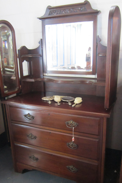 AN EARLY 20TH CENTURYWALNUT DUTCHESS, WITH SWING MIRROR AND THREE DRAWER