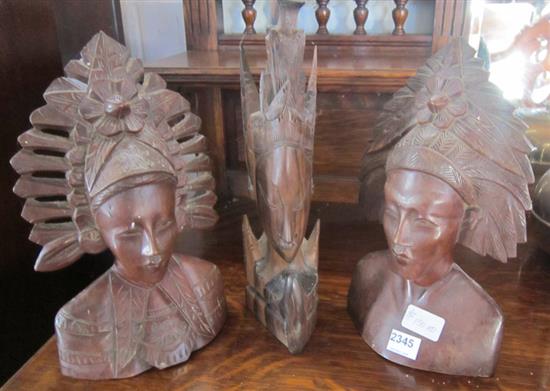 THREE CARVED WOODEN FIGURINES