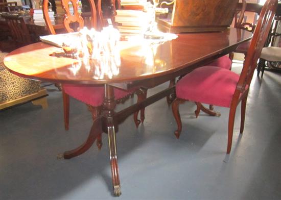 A REGENCY STYLE D-END DINING TABLE, WITH A TWIN PEDESTAL BASE, LION PAW FEET, 200 X 100