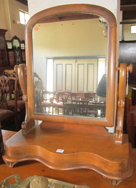 AN EARLY 20TH CENTURYDRESSING MIRROR, WITH A SERPENTINE BASE MIRROR, CARVED SUPPORT, D SHAPED