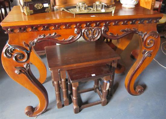A CARVED WOODEN HALL TABLE, 109 X 49