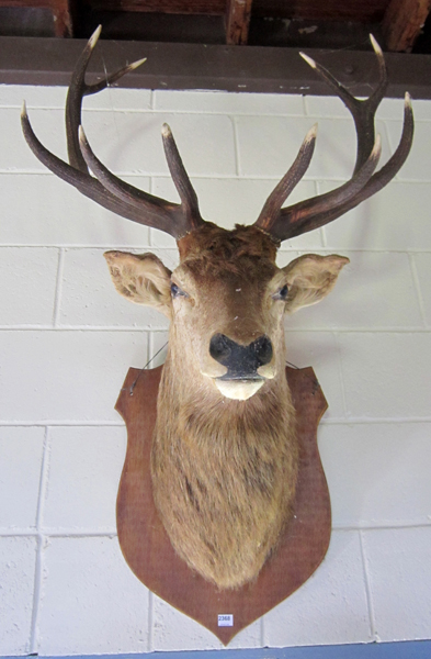 A TAXIDERMIED STAG, WITH FIVE POINT ANTLERS