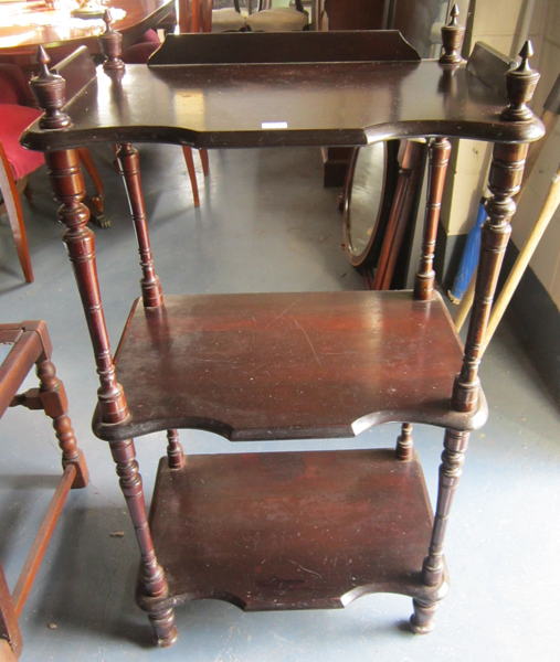 A VINTAGE THREE TIER WHAT-NOT, 95 CM HIGH