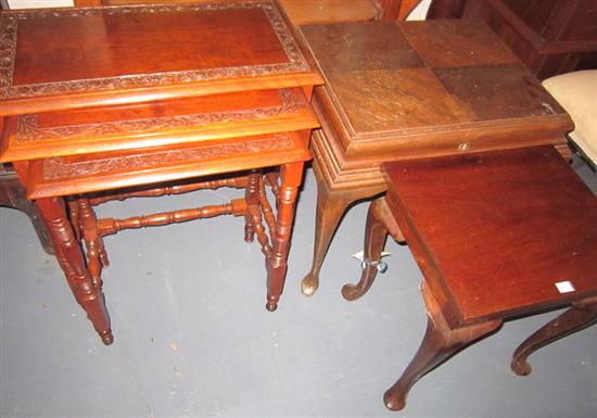 A SELECTION OF FURNITURE, NEST OF THREE TABLES, SIDE TABLE, CUTLERY CANTEEN