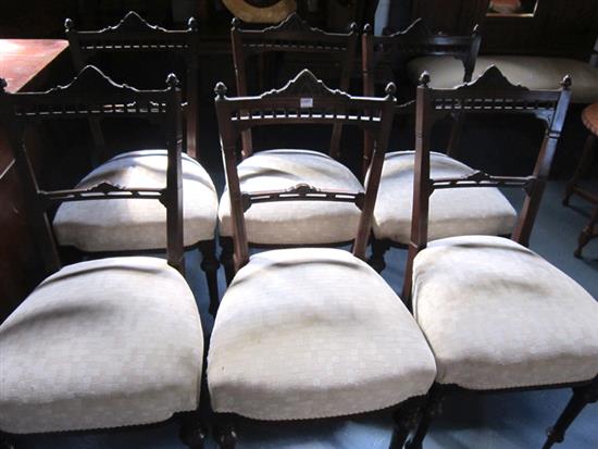 A SET OF SIX EARLY 20TH CENTURY DINING CHAIRS, WITH GALLERY BACKS AND UPHOLSTERED SEAT