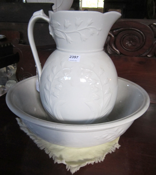 A 19TH CENTURY JUG AND BASIN SET, SOME LOSSES