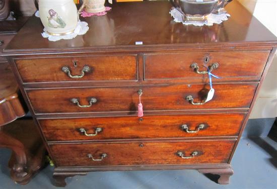 A GEORGIAN MAHOGANY CHEST OF DRAWERS, WITH TWO OVER THREE DRAWERS, BRACKET FEET, KEY, 96 X 108 X 52