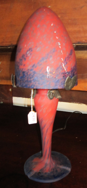 A FRENCH STYLE GLASS TABLE LAMP, SIGNED ART DE FRANCE, 40CM HIGH