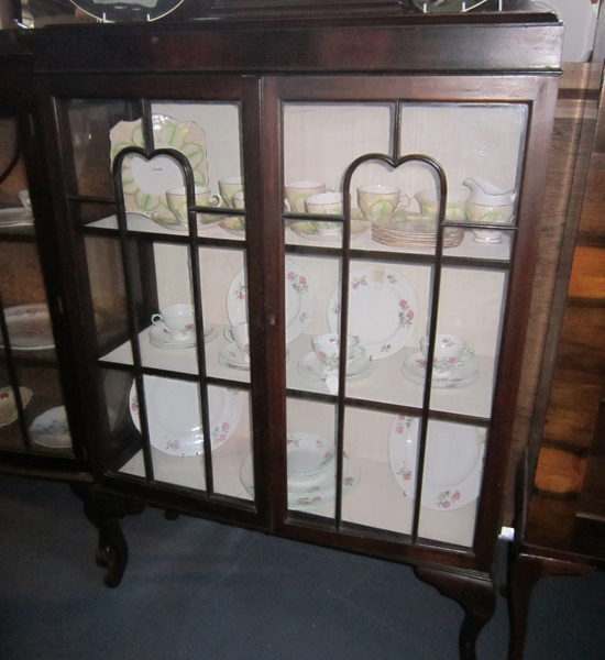 AN EARLY 20TH CENTURY TWO DOOR DISPLAY CABINET, WITH TWO SHELVES, 134 X 88 X 31