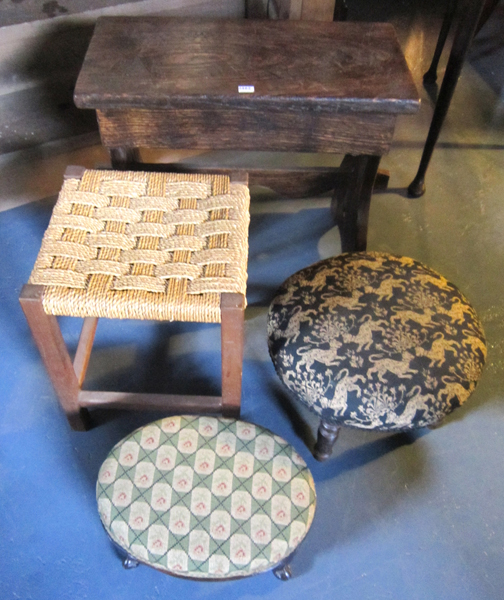 FOUR SMALL STOOLS, OAK AND VICTORIAN STYLE