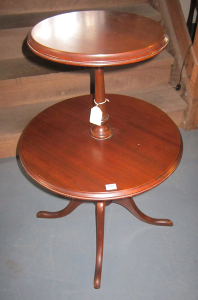 A TWO TIER DUMB WAITER WITH FOUR LEGS