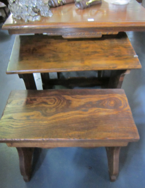 AN AUSTRALIAN CEDAR SIDE TABLE AND TWO STOOLS