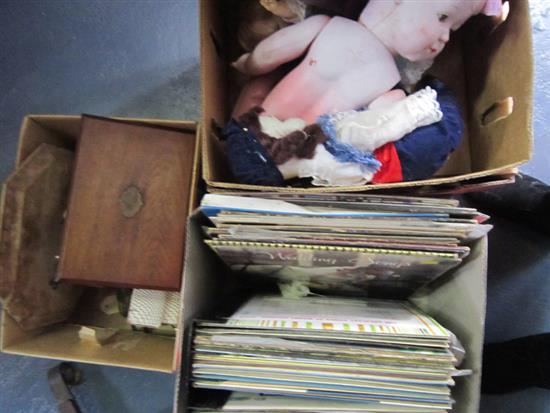 A SELECTION OF ASSORTED COLLECTABLES, INCLUDING RECORDS, TOYS, EPNS ETC
