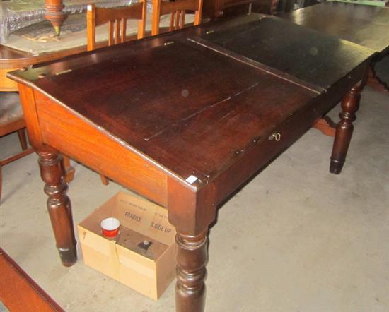 A MID 19TH CENTURY FULL CEDAR DRAFTSMAN'S DESK WITH A DUAL LIFT TOP AND TURNED LEGS, 167.5 X 89.5 X 81 CM