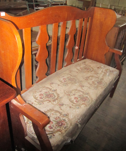 A SILKY OAK HALL SETTLE, 139 X 116 X 54 CM