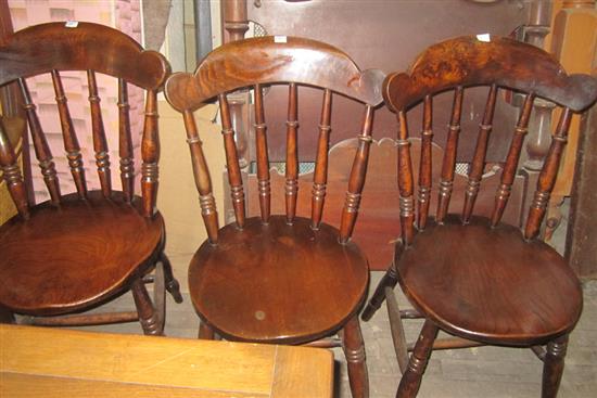 A SET OF THREE ENGLISH PROVINCIAL ELM SPINDLE BACK CHAIRS