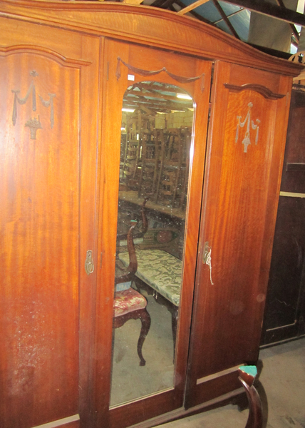 AN EDWARDIAN CEDAR TWO DOOR WARDROBE WITH CENTRE MIRROR DOOR (SOME APPLIED DECORATION MISSING) 152 X 195.5 X 53 CM