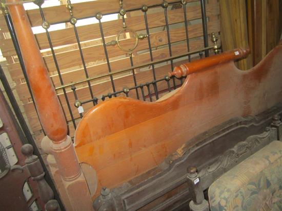 A PINE DOUBLE BED HEAD AND FOOT AND AN INDIVIDUAL HARDWOOD BED FOOT
