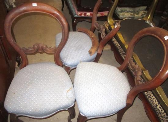 THREE CEDAR BALLOON BACK DINING CHAIRS, ONE REPAIRED AND ONE DAMAGED