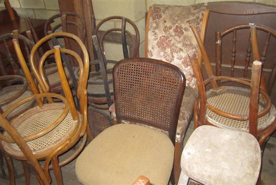 A COLLECTION OF ASSORTED CHAIRS INCLUDING TEN BENTWOOD CHAIRS AND TWO STANDARD CHAIRS, SOME DAMAGED (CONDITION AS FOUND)