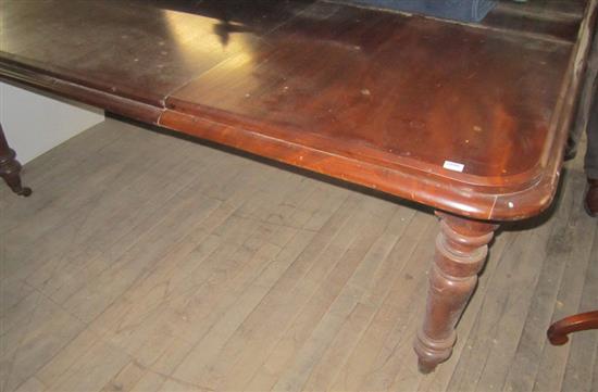 A VICTORIAN MAHOGANY EXTENSION DINING TABLE WITH TURNED SUPPORTS AND ONE LEAF, 181 X 76.5 X 117 CM