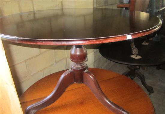 A 19TH CENTURY CIRCULAR TOP CEDAR CENTRE TABLE WITH TRIPOD BASE, 113 CM DIAMETER X 75 CM HIGH