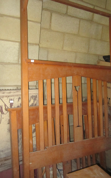 A KAURI PINE SINGLE BED HEAD AND FOOT AND CEDAR WALL CABINET (UNRESTORED) NO BED RAILS