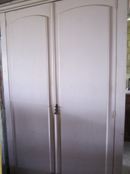 PAINTED PINE TWO DOOR WARDROBE WITH FOUR SHELVES, 116.5 X 188.5 X 48 CM
