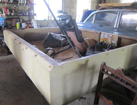 A BOX TRAILER CONVERTED FROM A CAMPER TRAILER, UNREGISTERED, (NO RWC), TOGETHER WITH A SET OF GOLF CLUBS