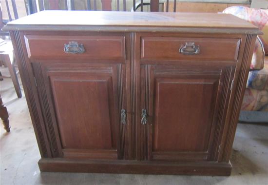 AN EDWARDIAN CEDAR SIDEBOARD WITH TWO DOORS AND TWO DRAWERS, 117.5 X 89.5 X 44 CM