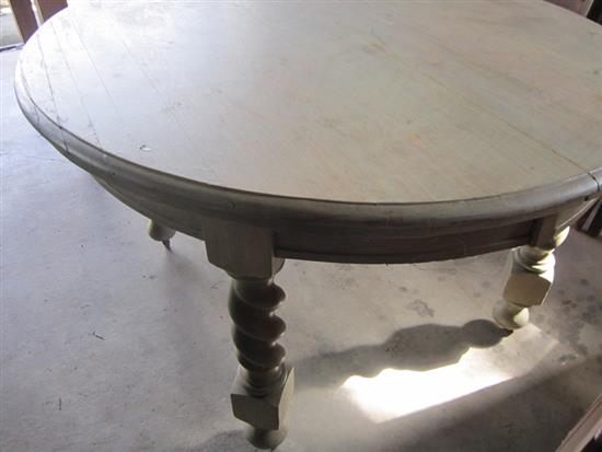 A CIRCULAR TOP LIMED OAK DINING TABLE, 120 CM DIAMETER, 75 CM HIGH