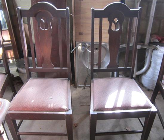 A SET OF SIX SILKY OAK DINING CHAIRS INCLUDING TWO CARVERS