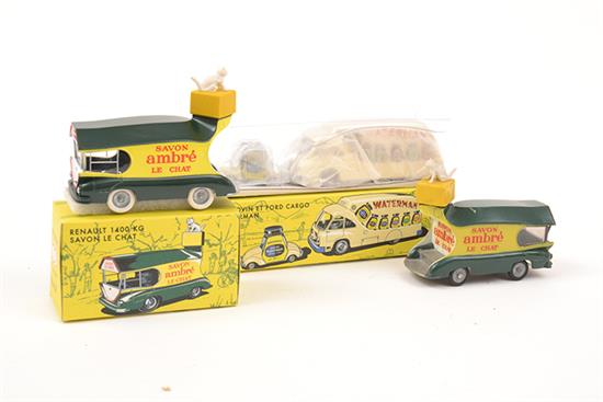 PR (FRANCE) 'SAVON AMBRE' LE CHAT' TRUCK, UNBOXED; REISSUE CIJ SAVON LE CHAT; AND REISSUE WATERMAN FARD CARGO, BOTH BOXED ITEMS MINT (VG-M BOXES M) (3)