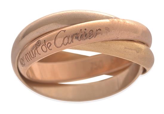 The interlocking bands in 18ct gold, serial number 5705218C, ring size O-P.
