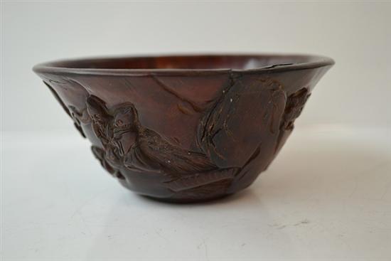 CHINESE HORN BOWL WITH CARVED BAT DECORATION