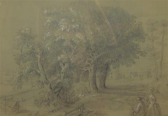 ARTIST UNKNOWN, ARTIST SKETCHING BY A TREE, PENCIL AND CHALK, INSCRIBED 'T. WAINE WRIGHT' VERSO, 23 X 33CM