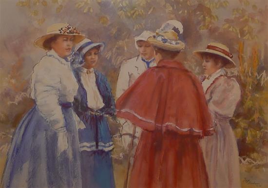 GAYE BONHAM, CATCHING UP ON THE GOSSIP, WATERCOLOUR, 40 X 56CM