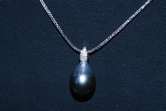 AN 11MM TAHITIAN PEARL PENDANT WITH DIAMOND SET BALE IN 18CT GOLD.