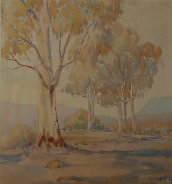 SIERWRIGHT, LANDSCAPE WITH TALLGUMS, WATERCOLOUR, 23 X 22CM