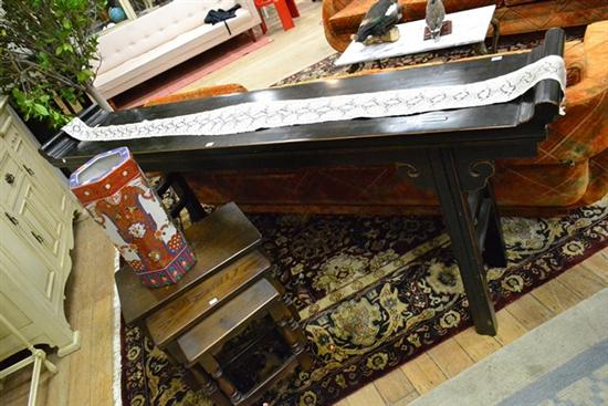 A 19TH CENTURY MIRROR BACKED AND INLAID MAHOGANY SIDE BOARD WITH GLAZED DOORS