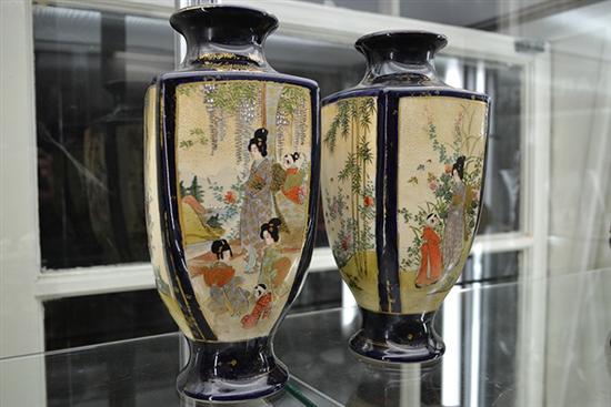 A PAIR OF JAPANESE SATSUMA BLUE GROUND VASES, SIGNED TO BASE