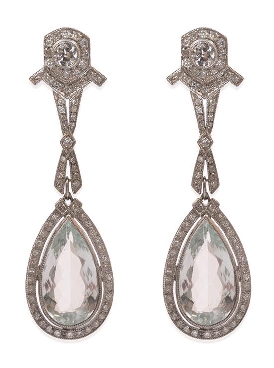 A PAIR OF AQUAMARINE AND DIAMOND DROP EARRINGS