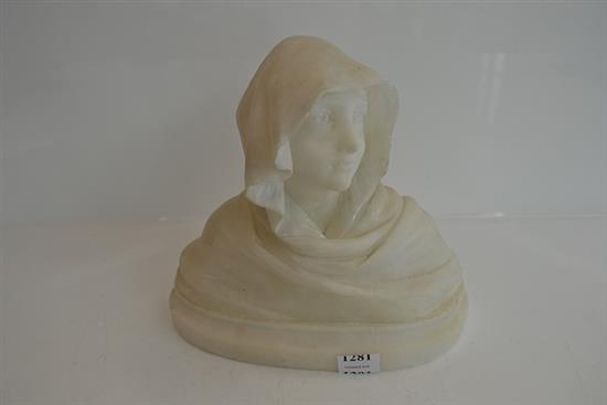 SMALL CARVED MARBLE BUST OF CLOAKED WOMAN, SIGNED A. DEL PERUGIA