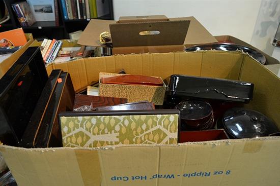 ONE BOX OF LACQUER WARE INCLUDING TRAYS, BOWLS ETC